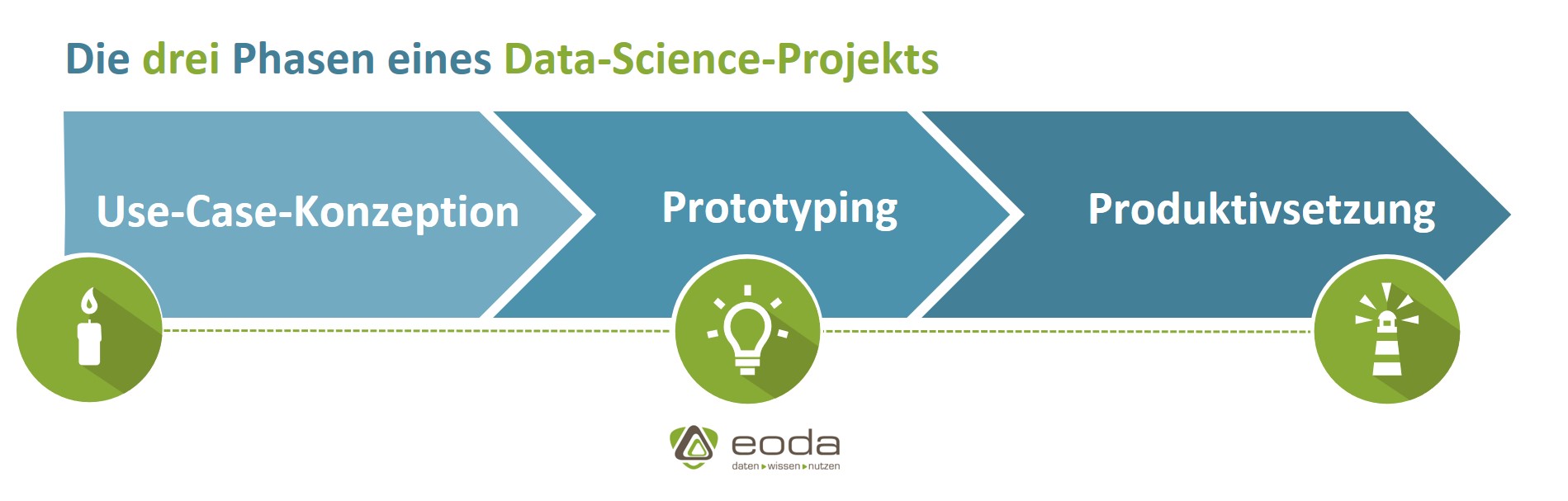 Als Data Science Experten sind wir von eoda Ihr Ansprechpartner, wenn es darum geht in einem Data-Science-Projekt Mehrwerte aus Daten zu generieren. Wir begleiten Sie von der Identifikation des richtigen Anwendungsfalls, über das Datenmanagement und die Modellbildung bis zur Implementierung des Analysemodells in Ihre Geschäftsprozesse.