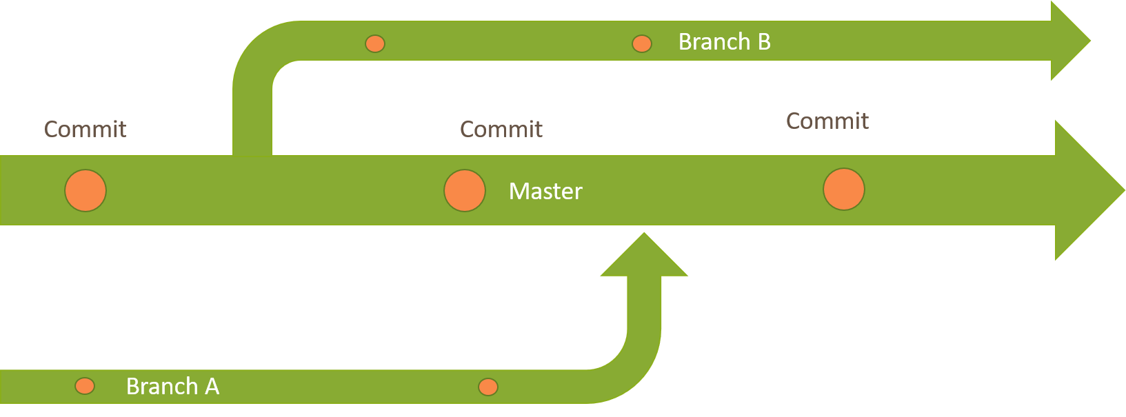 Sollen größere Änderungen an dem bestehenden Code vorgenommen werden, ist es möglich neue Abzweigungen des Codes zu definieren und diese zu einem späteren Zeitpunkt wieder zusammenzuführen. Die einzelnen Abzweigungen werden als Branches bezeichnet, der Standard Branch als master.
